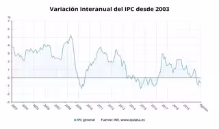Con este avance de una décima, el IPC interanual regresa a los ascensos después de haber retrocedido en julio tres décimas. Con el dato de agosto, la inflación encadena cinco meses en tasas negativas.