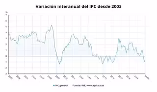 El Índice de Precios de Consumo (IPC) subió un 0,5% en junio en relación al mes anterior y elevó seis décimas su tasa interanual, hasta el -0,3%, frente al -0,9% de mayo, según los datos definitivos publicados este martes por el Instituto Nacional de Estadística (INE), que coinciden con los avanzados a finales del mes pasado.