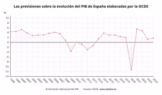 La previsión para 2022 de la OCDE es superior a la que manejan tanto el Gobierno como el resto de grandes instituciones. Así, frente al 4,7% que estima la OCDE se sitúa la previsión del 4,4% del Gobierno, del 4,5% de Banco de España y la Comisión Europea y del 4,3% del Fondo Monetario Internacional (FMI). Para 2023, en cambio, la previsión de la OCDE es superior a la de Bruselas (1%) y el FMI (1,2%), pero inferior a la de Banco de España (1,4%) y el Gobierno (2,1%).