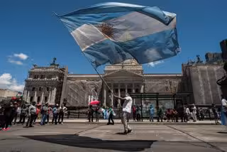 Archivo - Un hombre hondeando la bandera de Argentina en la Plaza de Mayo - Alejo Manuel Avila/Le Pictorium / DPA - Archivo