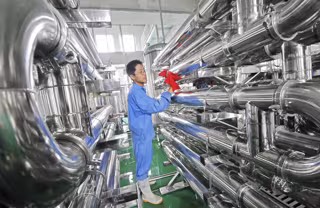 Archivo - Un empleado limpia unos equipos en una fábrica de vinos en Weifang, China, jul 28 2013. La demanda repuntó en el sector manufacturero de Estados Unidos en agosto, según datos publicados el martes, lo que junto a un informe que mostró un crecimie - CHINA DAILY CHINA DAILY INFORMATION CORP - CDIC /