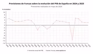El Panel de Funcas ha revisado al alza en dos décimas la previsión de crecimiento del PIB para 2024, hasta el 2,1%, debido a un crecimiento mayor de lo esperado en el último tramo de 2023 y el primer trimestre del presente ejercicio, a lo que se suma que los indicadores más recientes apuntan a un "vigor similar" en el segundo trimestre.