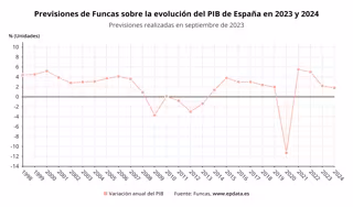 Esta cifra, inferior a las estimaciones de los principales organismos nacionales e internacionales, se basa en una aportación del sector exterior ligeramente negativa, frente a una contribución positiva de 1,9 puntos por parte de la demanda interna. Los panelistas prevén que tanto el consumo de los hogares como la inversión tengan el próximo año un crecimiento superior al de 2023, mientras que el consumo público crecerá menos que este año.