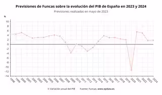 El Panel de Funcas ha revisado al alza en dos décimas su previsión de crecimiento del Producto Interior Bruto (PIB) español para 2023, hasta el 1,7%, mientras que ha recortado tres décimas sus estimaciones para 2024, hasta el 1,8%.