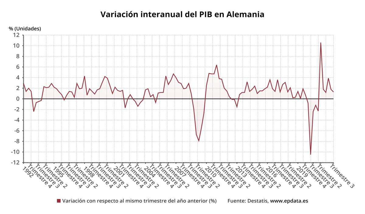 En comparación con el cuarto trimestre de 2019, el último trimestre anterior al inicio de la crisis del Covid-19, el PIB de la 'locomotora europea' superó por primera vez el nivel previo a la pandemia en el tercer trimestre de 2022 (+0,3%).