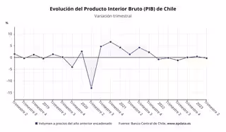 El Producto Interior de Chile cayó un 0,3% en el segundo trimestre del año en comparación con el primer trimestre, mientras que experimentó un retroceso interanual del 1,1%, según ha divulgado este viernes el Banco Central de Chile.