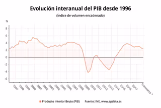 Esta tasa del 2,4% es una décima inferior a la inicialmente estimada por Estadística en el dato adelantado el 31 de octubre (2,5%), y es la menor tasa de crecimiento desde el cuarto trimestre del año 2014. Sí ha coincidido, por el contrario, el dato trimestral que adelantó el INE, del 0,6%.