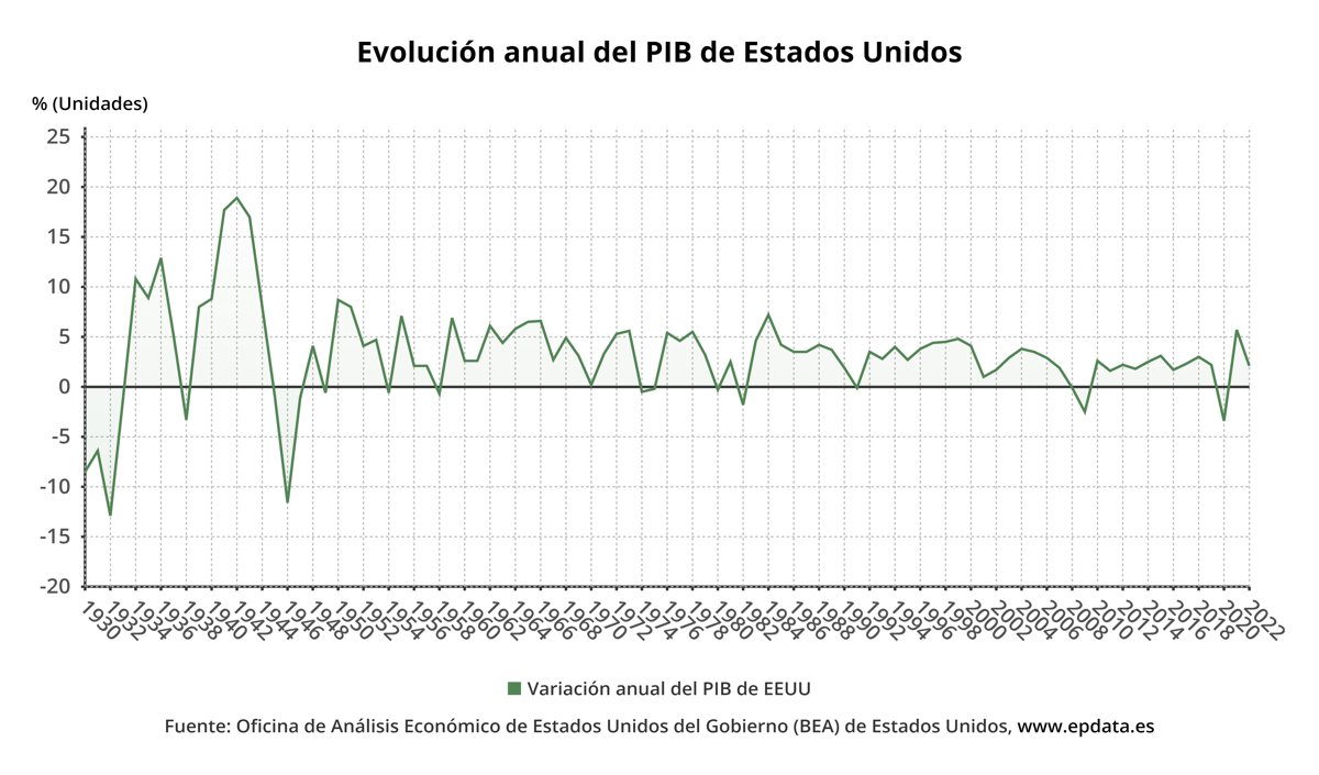A pesar de la desaceleración observada en el último trimestre de 2022, el crecimiento del PIB de EE.UU. superó ampliamente el ritmo del 0,1% registrado en la zona euro, así como el 0,2% de Japón y el estancamiento del Reino Unido.
