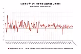 El producto interior bruto (PIB) de Estados Unidos experimentó un crecimiento anualizado del 2,1% entre los meses de julio y septiembre, lo que representa un incremento de una décima con respecto al crecimiento del trimestre inmediatamente anterior, según la tercera estimación del dato publicada este viernes por la Oficina de Análisis Económico del Gobierno (BEA, por sus siglas en ingles).