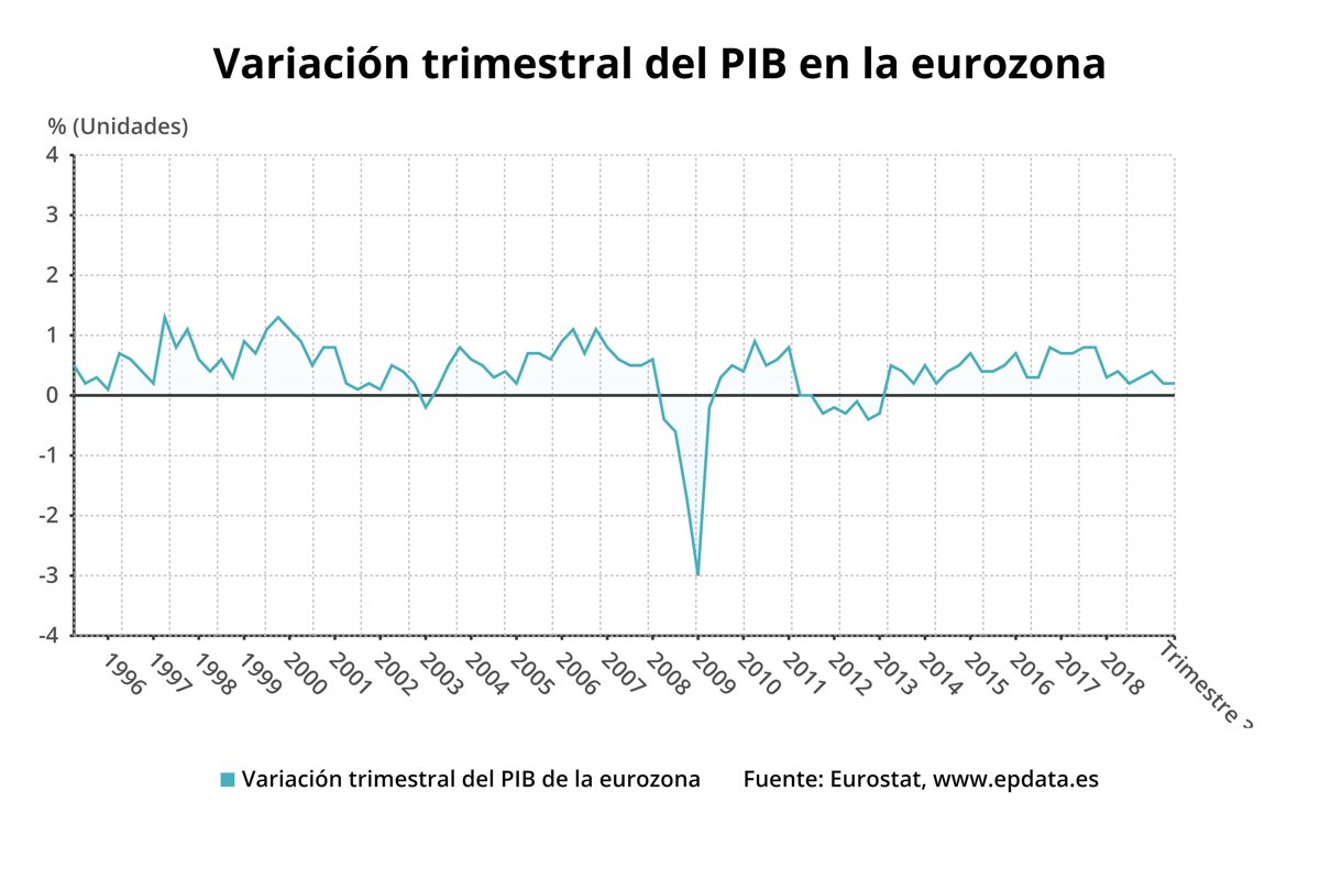 En comparación con el tercer trimestre de 2018, el crecimiento interanual del PIB de la zona euro se mantuvo en el 1,2% y entre los Veintiocho repitió en el 1,4% del trimestre anterior.