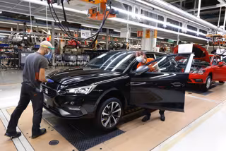 Archivo - Dos trabajadores en la línea de producción del Seat León en la fábrica de Martorell (Barcelona) - SEAT - Archivo