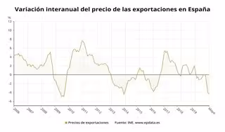 El único sector con influencia positiva en la tasa anual de los precios de las exportaciones fue el de la energía, cuya variación aumentó en mayo más de dos puntos, hasta el -49,8%, debido al encarecimiento de la producción y transporte de energía eléctrica.