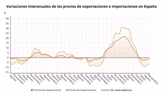 Con el descenso de noviembre, los precios de importación encadenan su noveno mes consecutivo de tasas interanuales negativas.