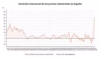Los precios industriales subieron un 3,8% el pasado mes de enero en relación al mes anterior y se dispararon un 35,7% en tasa interanual, cinco décimas por encima de la de diciembre y crecimiento récord en 46 años, según ha informado este viernes el Instituto Nacional de Estadística (INE).