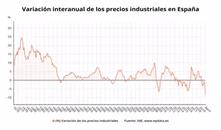 La aceleración en el descenso interanual de los precios industriales de abril se ha debido principalmente al recorte en nueve puntos de la tasa de energía, hasta el -24,6%, su mayor caída de la serie, por el abaratamiento del refino de petróleo y la producción de energía eléctrica.