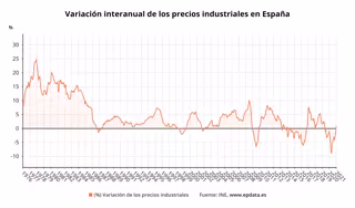 Las tasas negativas más pronunciadas corresponden a Cantabria (-4,9%) y País Vasco (-1,8%), mientras que los mayores crecimientos anuales de los precios industriales se dan en Asturias (+11,4%), Canarias (+10,3%) y Baleares (+9,1%).