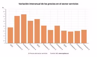 Con este repunte, los precios del sector servicios encadenan doce trimestres (tres años) de alzas interanuales, siendo la del cuarto trimestre de 2024 la tasa más alta desde el mismo periodo de 2023.