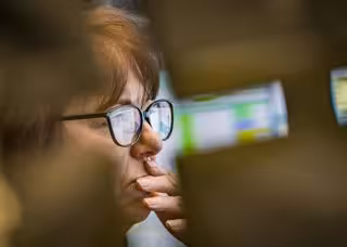26 February 2020, Hessen, Frankfurt_Main: A trader looks at the monitors at a trading room of the Frankfurt stock exchange. The Dax fell below 12,500 points in the morning to its lowest level since mid-October 2019, and more and more companies are putti - Frank Rumpenhorst/dpa - Archivo