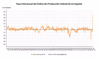 El Índice General de Producción Industrial (IPI) se disparó un 50,3% en abril en relación al mismo mes de 2020, registrando así su mayor alza de toda la serie histórica, que se inicia en 1975, según ha informado este lunes el Instituto Nacional de Estadística (INE).