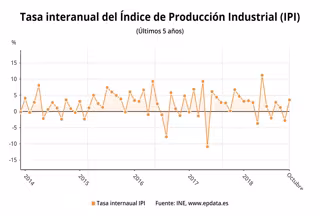 El Índice General de Producción Industrial (IPI) subió un 3,6% en octubre en relación al mismo mes de 2017, tasa 6,6 puntos superior a la de septiembre, según ha informado este miércoles el Instituto Nacional de Estadística (INE).