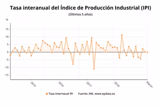 Con el retroceso interanual de marzo, la producción industrial regresa a tasas negativas después de haber subido un 0,1% en febrero.