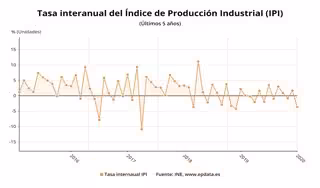 Con el retroceso interanual de enero, la producción industrial registra su mayor caída desde diciembre de 2018, cuando cayó un 4,2%.