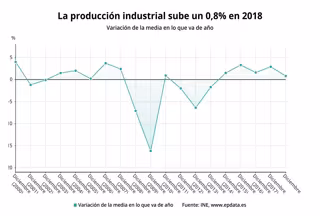 En el último mes de 2018, la producción industrial registró un retroceso del 4,2% respecto a diciembre de 2017, tasa un punto inferior a la de noviembre y su mayor descenso desde abril de 2017. Con la bajada interanual de diciembre la producción industrial encadena dos meses consecutivos en negativo.