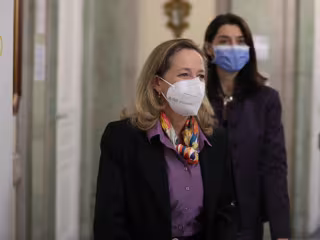 Archivo - La vicepresidenta de Asuntos Económicos y Transformación Digital, Nadia Calviño (i) y la ministra de Justicia, Pilar Llop (d), a su salida de las IV Jornadas de Justicia e Igualdad, en el Palacio de Parcent, a 9 de marzo de 2022, en Madrid (Es - Isabel Infantes - Europa Press - Archivo