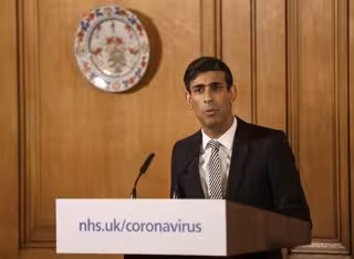 17 March 2020, England, London: UK Chancellor of the Exchequer Rishi Sunak speaks at a media briefing in Downing Street, on Coronavirus (COVID-19) updates. Photo: Matt Dunham/PA Wire/dpa - Matt Dunham/PA Wire/dpa