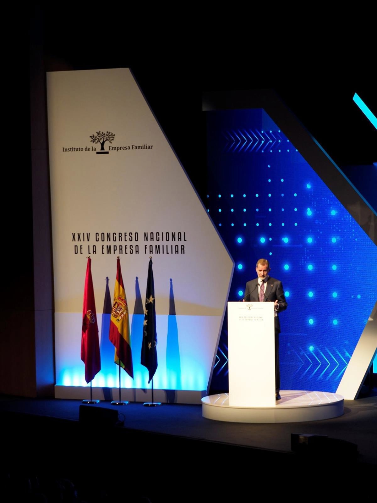 Don Felipe ha asegurado que "allí donde hay empresas familiares comprometidas, hay futuro". "Hagamos entre todos un futuro mejor; y hagámoslo con valores y con la convicción de que la sostenibilidad -medioambiental, económica y social- es fundamental para pasar el testigo a las próximas generaciones en las mejores condiciones posibles", ha afirmado.