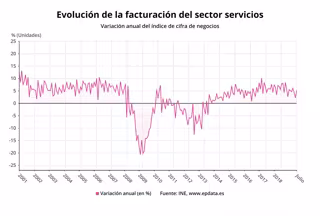 Corregidos los efectos estacionales y de calendario, la facturación de los servicios aumentó un 4% interanual en julio, tasa tres décimas por encima de la del mes de junio.