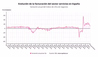 Corregidos los efectos estacionales y de calendario, la facturación de los servicios subió un 20,3% en el conjunto de 2022, mientras que la tasa interanual desestacionalizada se situó en diciembre del año pasado en el 14,4%, ampliando en 1,4 puntos la subida de noviembre.