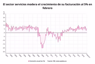 El sector servicios registró un aumento de su facturación del 5% el pasado mes de febrero en relación al mismo mes de 2018, según datos provisionales publicados este miércoles por el Instituto Nacional de Estadística (INE).