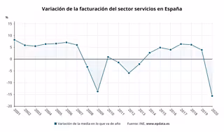 Por su parte, la facturación de los otros servicios se hundió un 21,9% en 2020. Los menores descensos dentro de los otros servicios se dieron en información y comunicaciones (-8,8%) y actividades profesionales, científicas y técnicas (-10,6%), mientras que los más acusados los presentaron la hostelería (-50,1%), las actividades administrativas y servicios auxiliares (-29,6%) y transporte y almacenamiento (-19,1%).