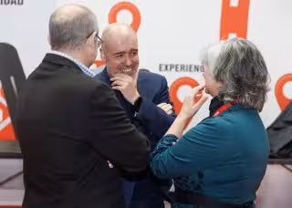 (I-D) El secretario general de CCOO Servicios, José María Martinez; el secretario general de CCOO, Unai Sordo, y la secretaria general de CCOO de Madrid, Paloma López, conversan en la inauguración del estand de CCOO de la Feria Internacional del Turismo - Eduardo Parra - Europa Press
