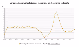 Con el avance del cuarto trimestre de 2025, las existencias de mercancías en el comercio encadenan 17 meses consecutivos de alzas interanuales.