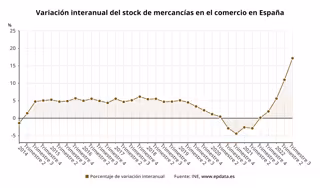 El nivel de existencias de mercancías en el sector del comercio registró un aumento interanual del 17,3% en el tercer trimestre, su mayor alza desde el comienzo de la serie, en 2013, según la encuesta coyuntural sobre stocks y existencias (ECSE) publicada este viernes por el Instituto Nacional de Estadística (INE).