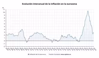 La tasa de inflación de la zona euro se situó en enero en el 2,8% interanual, una décima por debajo de la subida del 2,9% de los precios al cierre de 2023, según ha confirmado la oficina comunitaria de estadística, Eurostat, mientras que en el conjunto de la UE la tasa se desaceleró al 3,1% desde el 3,4% del mes anterior.