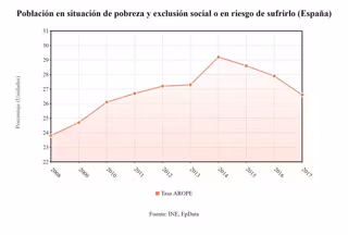 La tasa de riesgo de pobreza bajó hasta el 21,6% en 2017, su menor nivel desde 2013