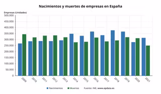 Se recupera así la tendencia positiva en el saldo neto de creación de empresas, después de que en 2020, marcado por la pandemia, se registrara por primera vez desde 2013 un mayor número de muertes de empresas que de nacimientos.