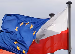 Archivo - FILED - 02 March 2007, Brandenburg, Frankfurt_Oder: The flags of the European Union (EU) and Poland wave at the German-Polish border crossing. The EuropeanCommission is asking the European Court of Justice (ECJ) to slap daily fines on Poland - Patrick Pleul/dpa-Zentralbild/dp - Archivo
