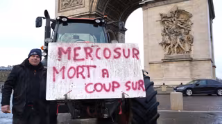 Varios tractores frente al Arco del Triunfo en París protestan contra el acuerdo de libre comercio negociado entre la UE y Mercosur. - Ana López