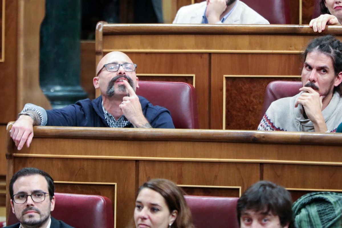 Los diputados de Unidas Podemos Txema Guijarro y Alberto Rodríguez sentados en sus escaños en un Pleno del Congreso - Jesús Hellín - Europa Press - Archivo