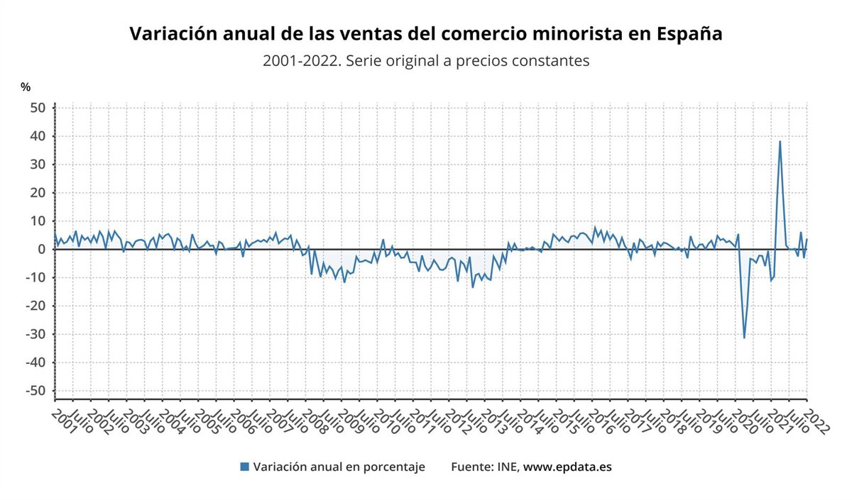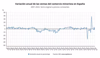 Variación anual de las ventas del comercio minorista (INE) - EPDATA