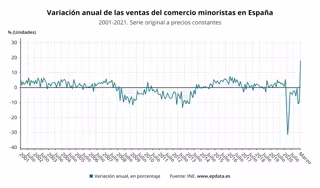 El comercio minorista registró un aumento de sus ventas del 18,1% en marzo respecto al mismo mes de 2020, su mayor alza desde 1995, cuando se inicia la serie.