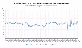 Con el dato de abril, las ventas del comercio minorista encadenan cinco meses consecutivos de tasas interanuales positivas.