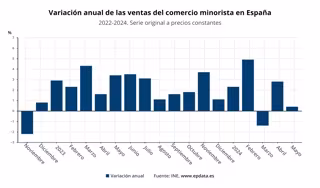 En cuanto el empleo, el comercio minorista elevó su ocupación un 1,7% en mayo en relación al mismo mes de 2023, tasa una décima inferior a la de abril. Pese a ello, el empleo en el comercio minorista encadena ya 37 meses de incrementos interanuales consecutivos.