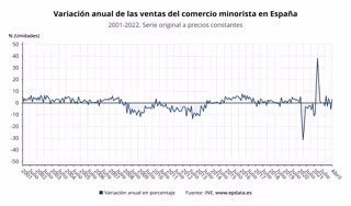 Variación anual de las ventas del comercio minorista en España (INE) - EPDATA