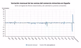 Variación mensual de las ventas del comercio minorista en España hasta noviembre de 2020 (INE) - EPDATA