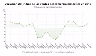 En el último mes de 2019, las ventas del comercio al por menor se incrementaron un 1,9%, tasa 1,1 puntos inferior a la de noviembre. Pese a ello, las ventas del comercio minorista encadenaron en diciembre 15 meses consecutivos de tasas positivas.